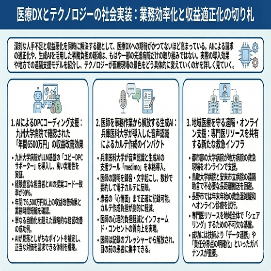 1. AIによるDPCコーディング支援:九州大学病院で確認された「年間6500万円」の収益改善効果