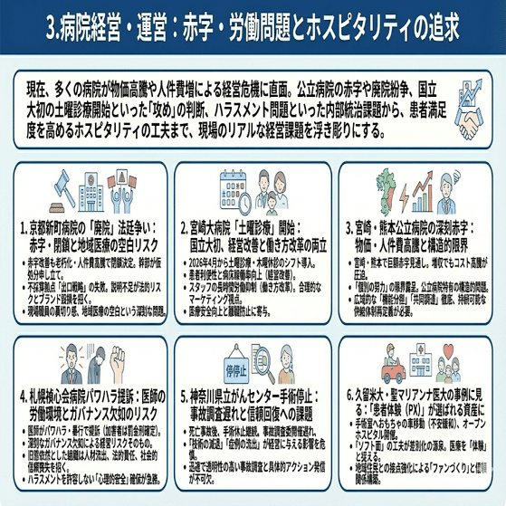 3.病院経営・運営:赤字・労働問題とホスピタリティの追求