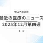 本記事では、2025年12月第三週のニュースにおいて、最新の行政動向から病院経営の現場で起きている課題、さらにはグローバルな医療トレンドまでを網羅的にピックアップしました。