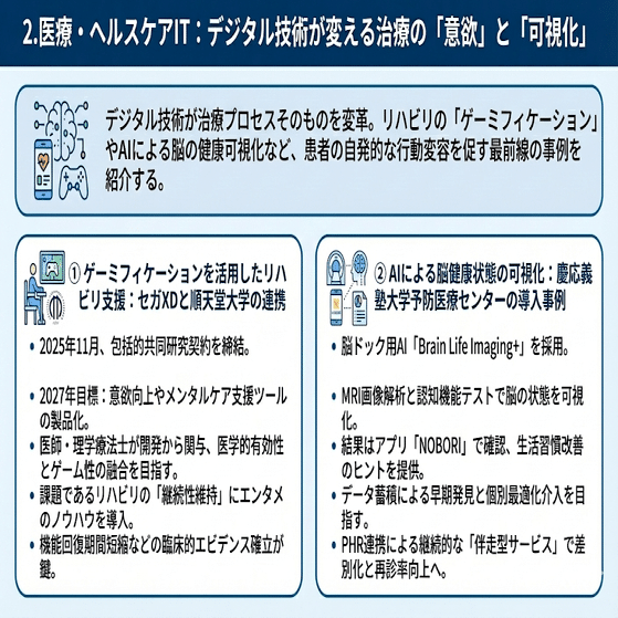 - 2.医療・ヘルスケアIT:デジタル技術が変える治療の「意欲」と「可視化」