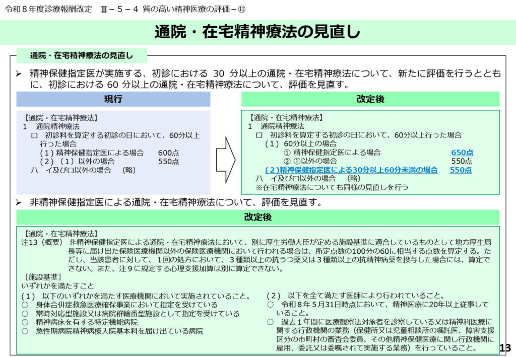 通院・在宅精神療法の時間評価充実と適正化