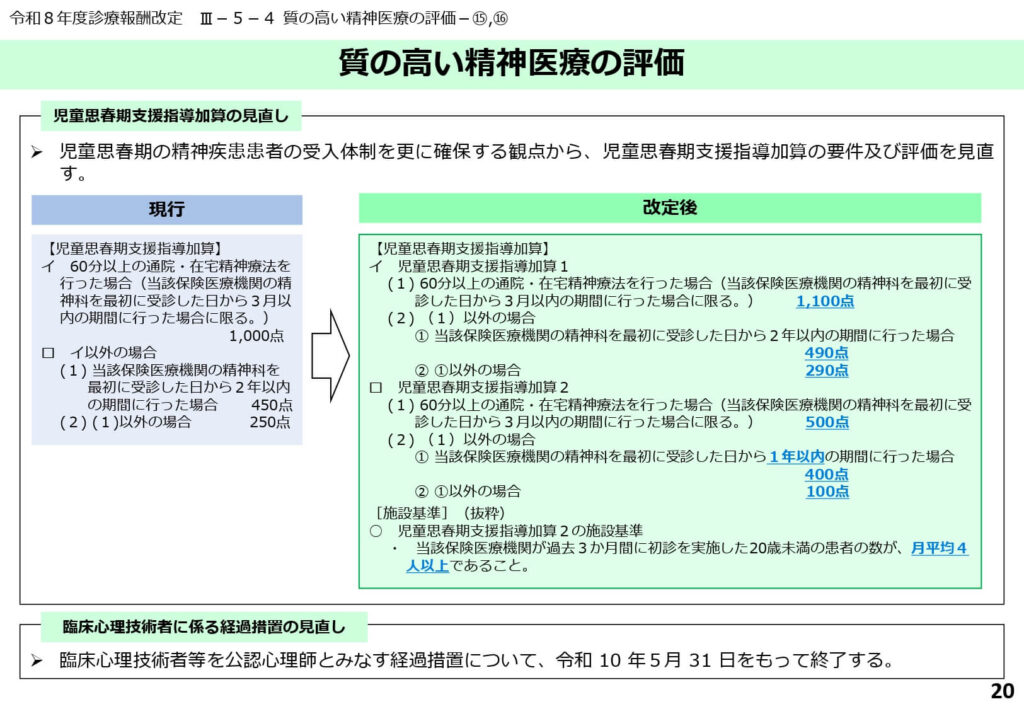 早期の適切な介入により、成人期への重症化や社会的損失を防ぐという将来投資的な側面が強い改定です。