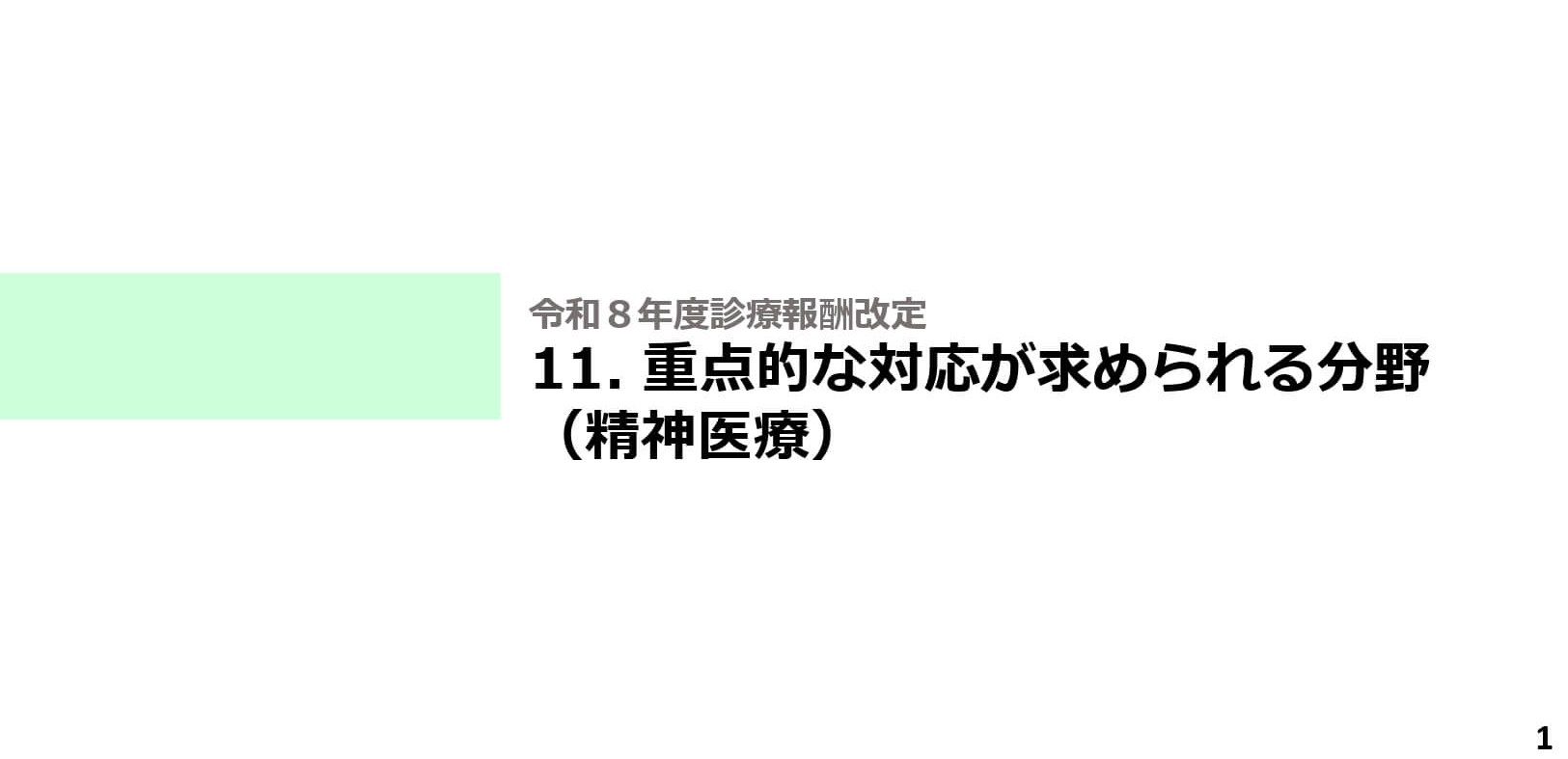 令和8年度診療報酬改定における「精神医療」分野では、精神疾患患者の急増と高齢化、そして「地域生活中心」という基本的理念に基づき、入院医療の機能分化と多職種連携の強化が柱となりました。